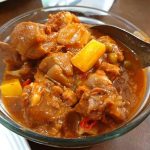 In a large bowl, combine the goat meat (chevon) with vinegar, salt and black pepper then marinate for at least an hour. Set aside.Note: Marinating the goat meat for an hour will eliminate the gamey smell. Pour the cooking oil in a cooking pot or casserole and apply heat.
