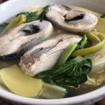 This delightful dish involves cooking medium to large sized fish in a broth that are mainly composed of rice washing and ginger; vegetables such as bok choy or pechay are also included for added flavor and nutrition.